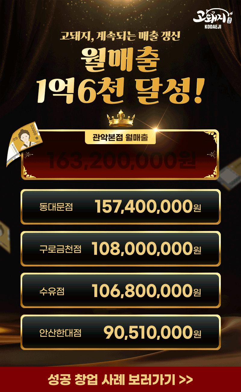 고돼지만의 매출 대비 높은 이익율!
