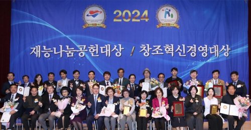 (사)한국재능기부협회(이사장 최세규)는 26일 한국방송회관 코바코홀에서 중소벤처기업부, 극동방송 후원 사회 아나운서 심소원 진행으로 ‘제35차 2024년 상반기 재능나눔공헌대상/창조혁신경영대상 시상식’ 행사를 개최했다. 이날 행사에는 정운찬 전 국무총리 (사)한국재능기부협회 명예 이사장을 비롯 백두옥 전 서울지방중소기업청 청장 등 중소기업인 및 재능나눔인들이 참석했고 협회 임원위촉식도 같이 진행되었다. 가수 박정식, 가수 우연이의 축하공연은 행사 분위기를 고조시켰다. 수상자로는 식품의약품안전처장 표창에 고정용 ㈜아이젠파마코리아 대표이사, 명노용 ㈜앤리치 대표이사, 손연주 ㈜낚지볶음개미집 대표이사, 김영님 ㈜대운푸드시스템 대표이사가, 서울지방중소벤처기업청장 표창에 김영태 바른창업주식회사 대표이사, 어수균 농업회사법인 주식회사 팜이노베이션 대표이사가, 창조혁신경영대상에 한재호 ㈜에이쓰리시큐리티 대표이사 외 7명, 재능나눔공헌대상에 하양선 (사)여성암건강관리예방협회 회장 외 9명, 재능문화예술대상에 김부자 (사)대한미협 이사장 외 7명, 재능명인대상에 원미희 여우락예술단 대표 외 5명, 국회 위원장 표창으로는 산업통상자원중소벤처기업위원장 상에 유무상 주식회사 벧엘정밀 대표이사가 선정되었고, 정무위원장, 기획재정위원장, 외교통일위원장, 보건복지위원장, 환경노동위원장, 행정안전위원장, 국방위원장, 농림축산식품해양수산위원장 표창이 각각 선정 시상되었다. 협회는 재능나눔을 통해 지역사회발전에 이바지한 분들을 대상으로 재능나눔 공헌대상을 수여하고, 또한 창조경영인협회에서는 혁신적인 아이디어와 상상력을 바탕으로 협업을 통해 고부가가치를 생산해내며, 이를 통해 일자리 창출과 국가 경쟁력 강화에 기여하는 기업가들을 대상으로 창조혁신경영대상을 수여하고, 남다른 재능으로 사회에 기여하는 문화예술인들을 대상으로 대한민국 재능문화예술대상을 수여하고 있다. 최세규 이사장은 이날 환영사를 통해 "어려운 시기지만 나눔과 배려의 정신을 나누며 따듯한 시간을 보낼 수 있도록, 우리 협회 또한 사회발전에 기여하는 재능기부인들을 끊임없이 발굴하여 4차 산업혁명 시대를 선도하고 국가경제 및 사회에 보답할 우수한 중소기업인들에 대한 홍보 및 집중적인 육성이 필요하다"고 밝혔다.